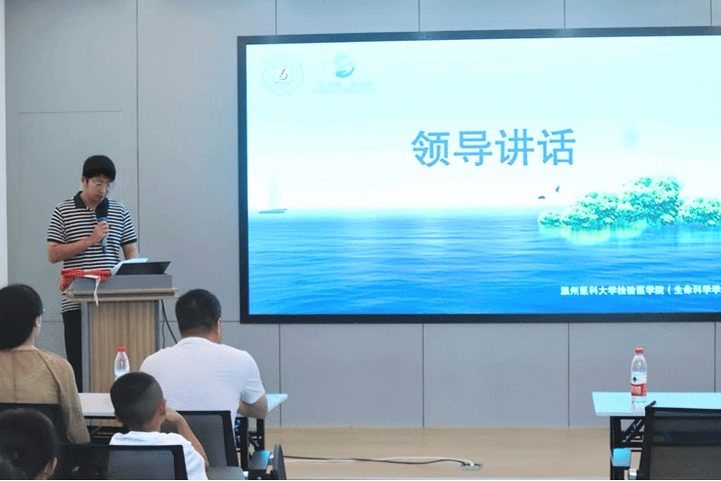 上午九点,阳光正好,开营仪式在主持人的热情开场中正式启动。温州市生态环境局洞头分局生态科科长应凌锋,北岙街道微动力党支部书记、洞头区慈善总会义工分会会长陈素芳,温州市洞头区半屏山学生实践学校校长叶明收,洞头团区委学少线、权益线负责人许洋洛出席此次开营仪式。应凌锋科长对实践团的到来表示热烈欢迎,并对本次夏令营提出期望,希望每位营员都能认真学习海洋生态系统的相关知识,增强保护生态环境的能力,早日成为未来的小小生态保护者,也希望加强与实践团的合作、共同举办生态保护公益活动。