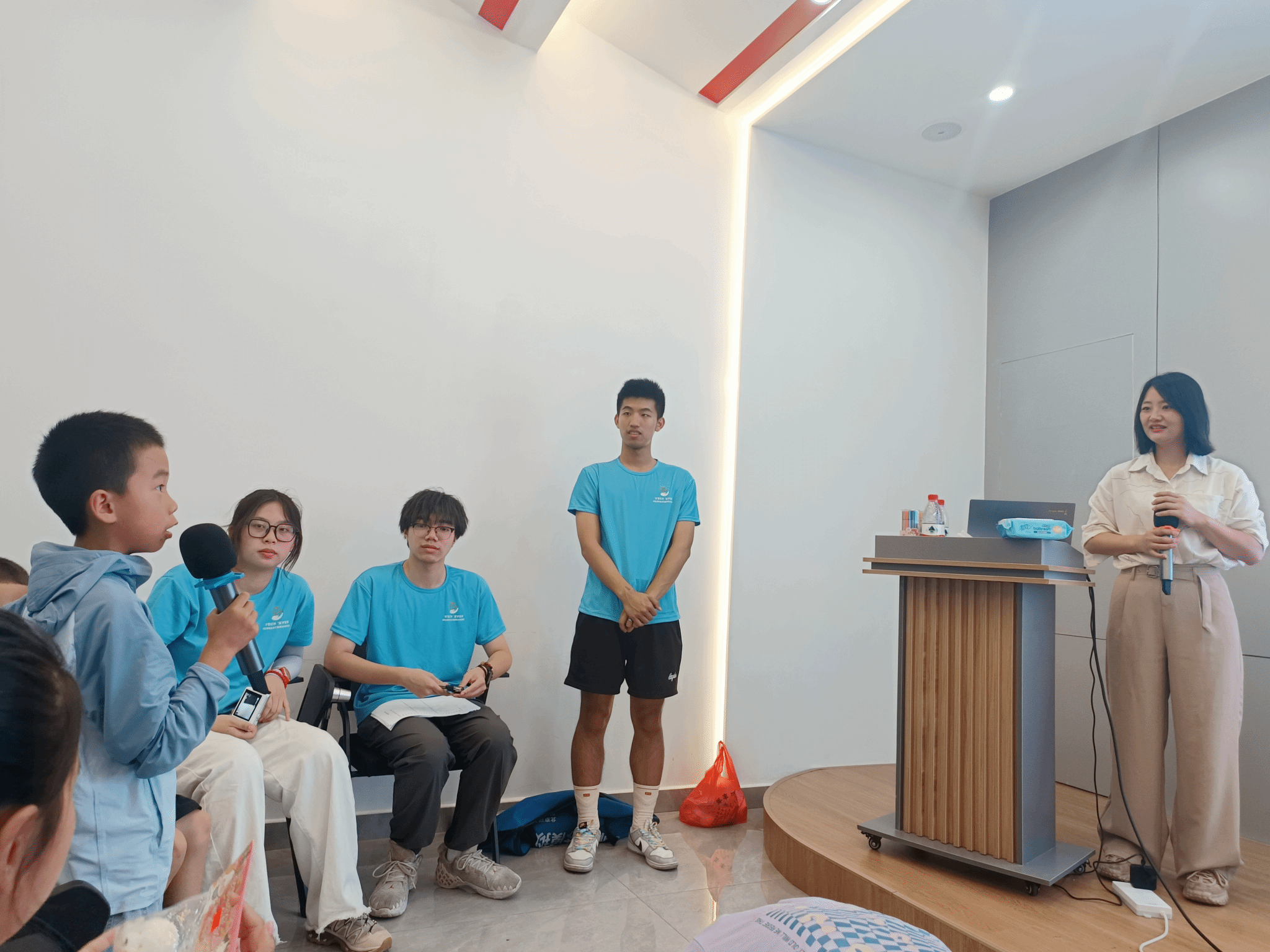 实践团代表介绍了实践团的基本情况及本次夏令营活动的流程安排,团队精心制作了《“浙”群蓝精灵》的团员介绍视频,引起小朋友们的阵阵惊呼,现场气氛轻松而愉快。