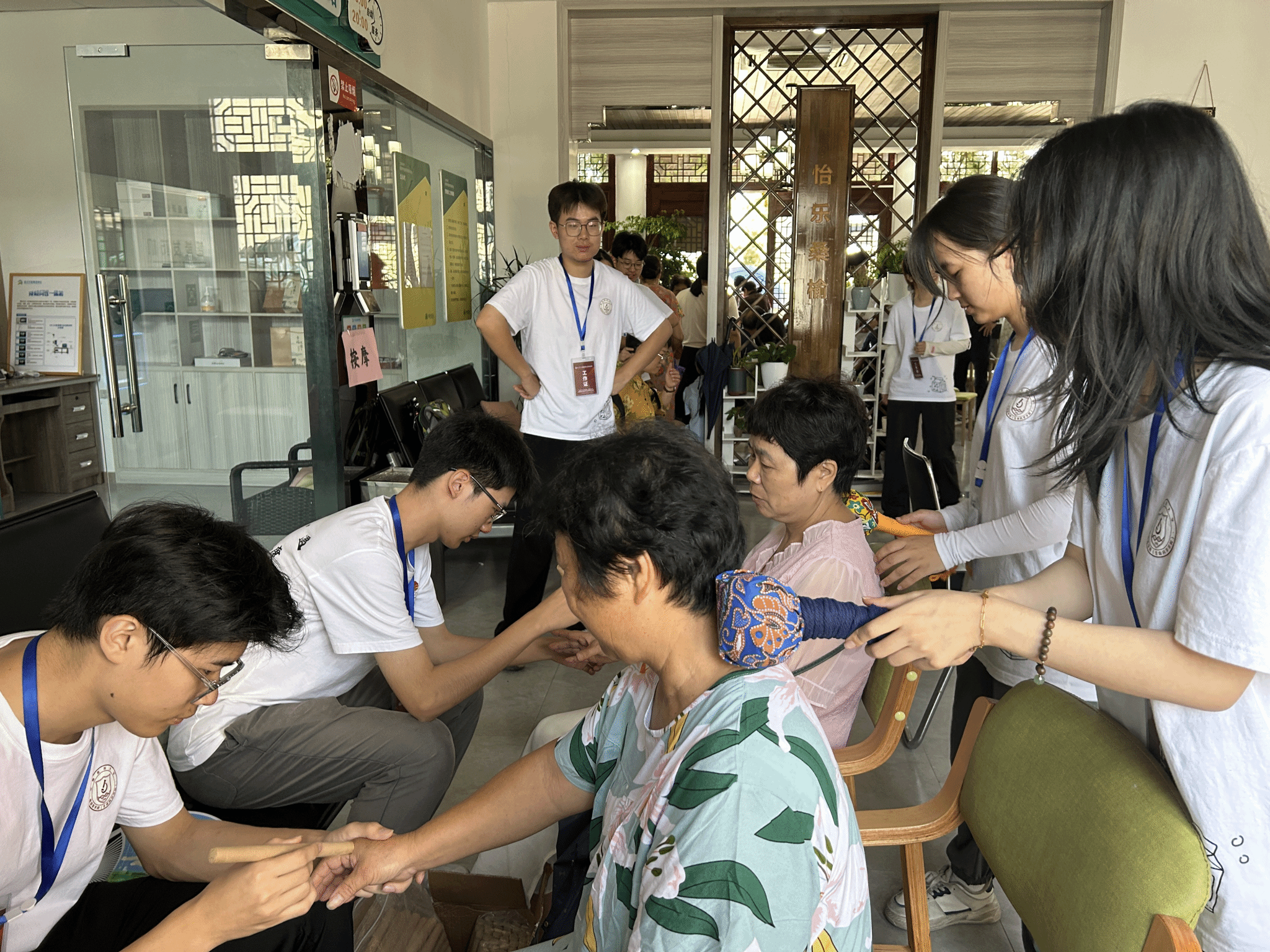 在实践团成员的陪同下,余信丰副书记一行参观并体验实践团开展的系列爱心义诊活动。实践团成员们熟练的操作和良好的服务态度得到了村民的一致认可和赞许。同时,实践团邀请厂长资源