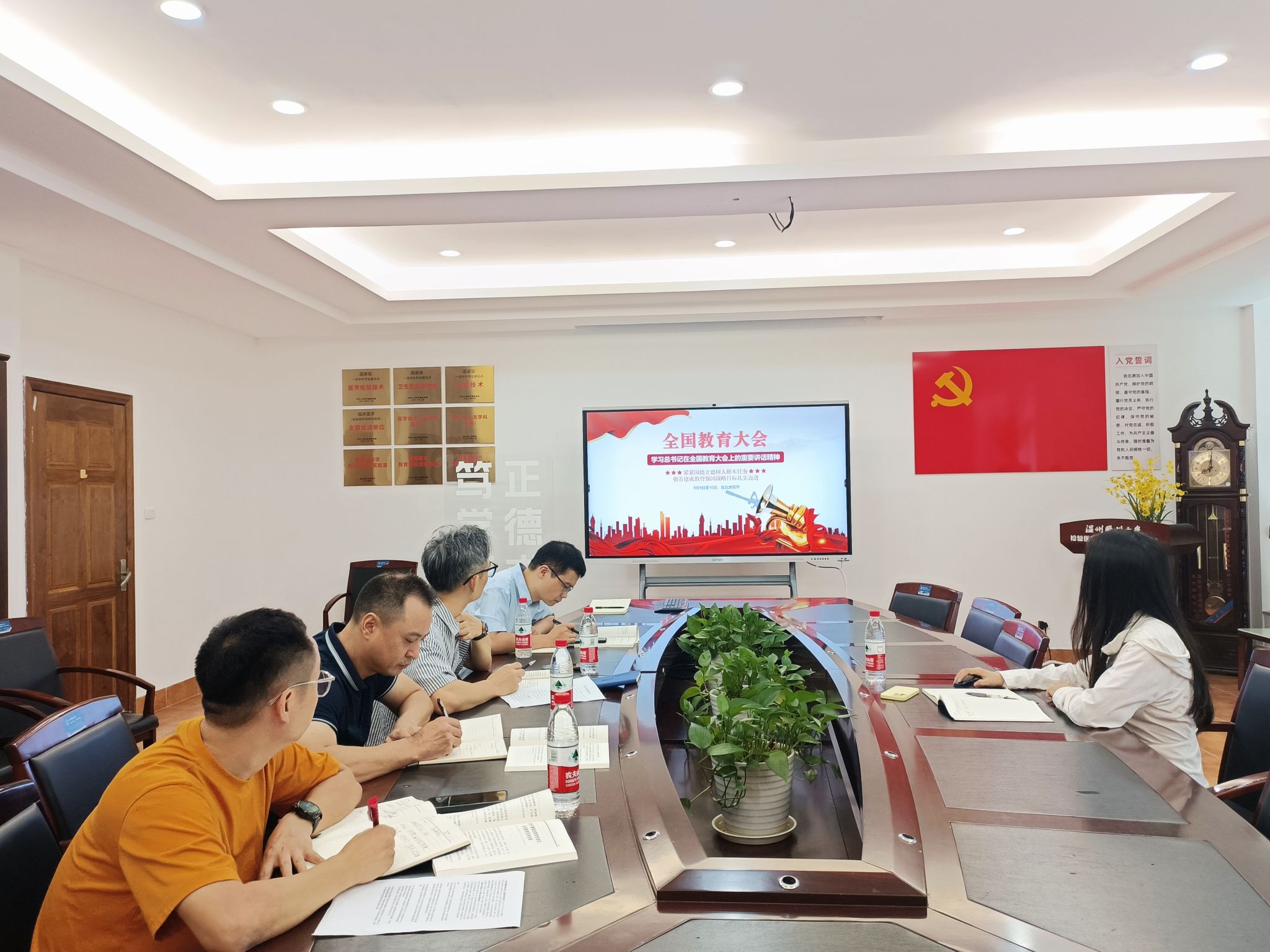 会上,院党委书记洪晓畅传达了习近平总书记在全国教育大会上的重要讲话精神,并针对大会“紧紧围绕立德树人根本任务,朝着建成教育强国战略目标扎实迈进”这一指示,结合习近平总书记提出的系统部署教育建设相关内容,从党纪学习常态化、思政课程创新化、人才引育体系化等方面,部署推进学院相关工作长效化开展。