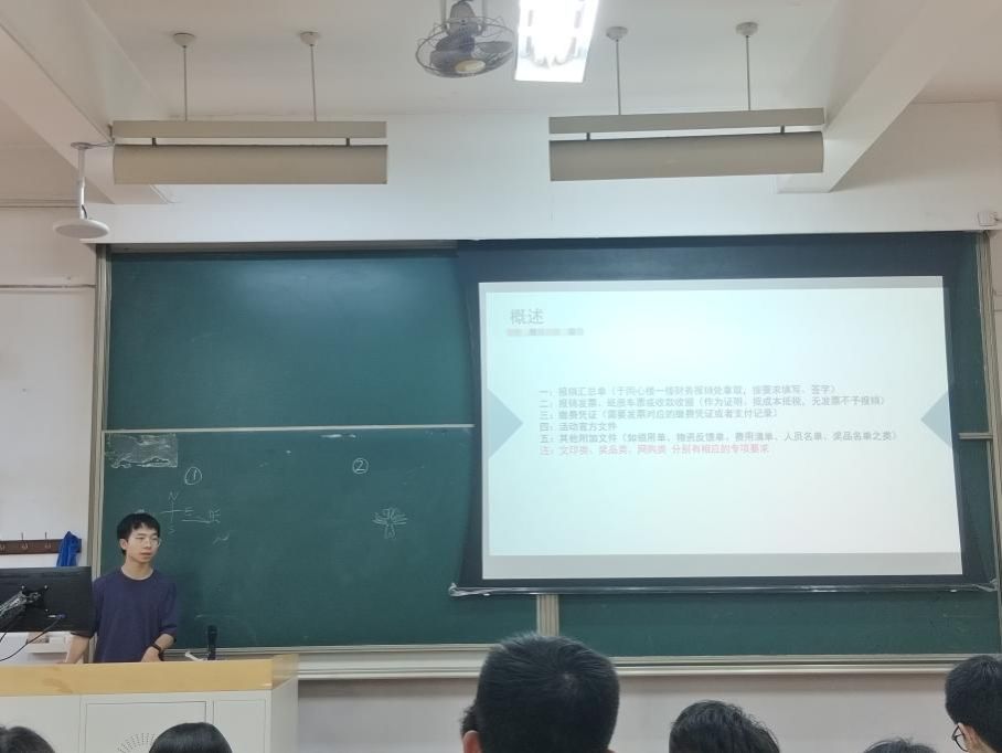 随后,开展第一次学生工作理论培训。学生会主席罗添齐向新任干事们介绍了策划活动相关的要求和规划。团委副书记徐乐瑶围绕“办公软件”主题,分享办公软件应用技能以及通知撰写要点。团委科创委员陈帝仲介绍了具体的报销流程工作。阳光志愿者服务社主席梁可晗科普活动拍照技巧。