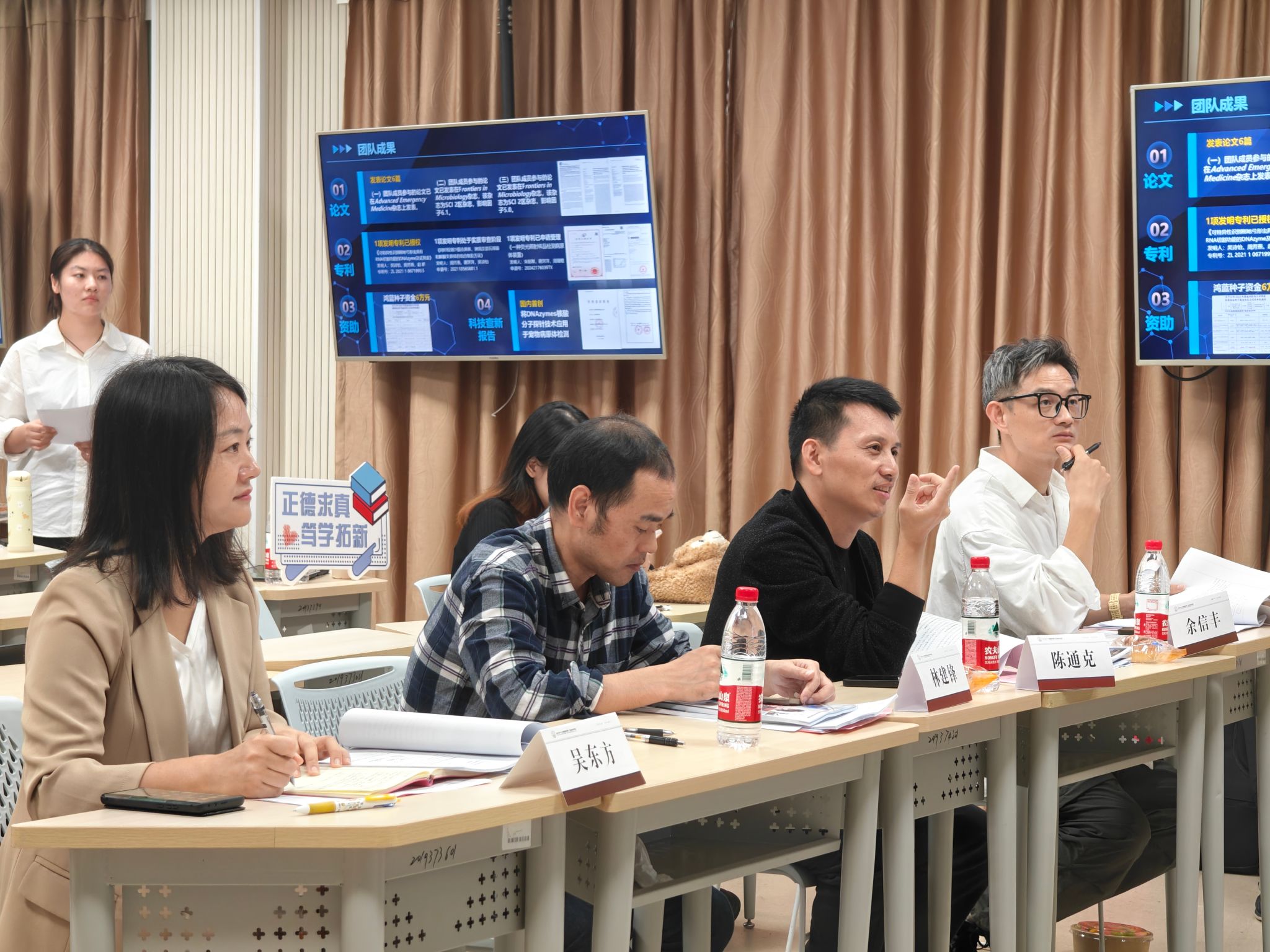 学子在检验领域积极探索学术创新性,以及检测技术的应用价值和转化前景。在答辩环节,评委老师从项目的创新性、实用性、技术难度以及ppt制作、项目申报书撰写、答辩技巧等方面进行严格评审,也为参赛项目的后续完善提供了建设性的指导意见。