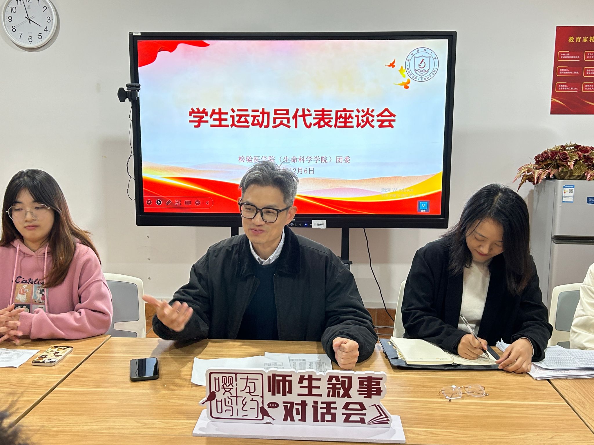 于12月6日下午在学院7A318会议室召开 “嘤鸣有约”学生运动员代表座谈会。院党委副书记余信丰、第五十届校运会学生优秀运动员代表、学生会干部代表参加此次座谈。
