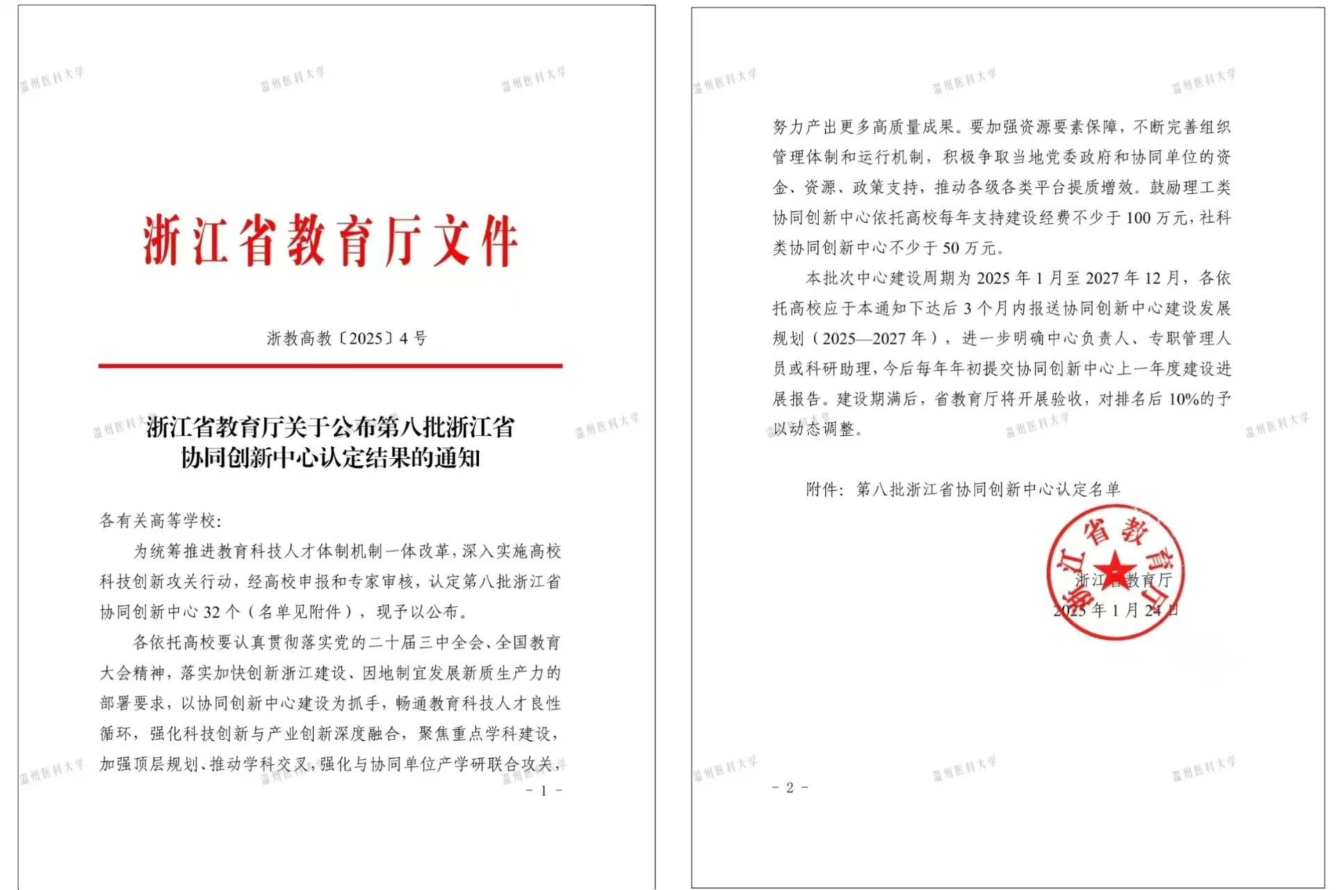 近日,浙江省教育厅公布第八批浙江省协同创新中心认定结果,由厂长资源