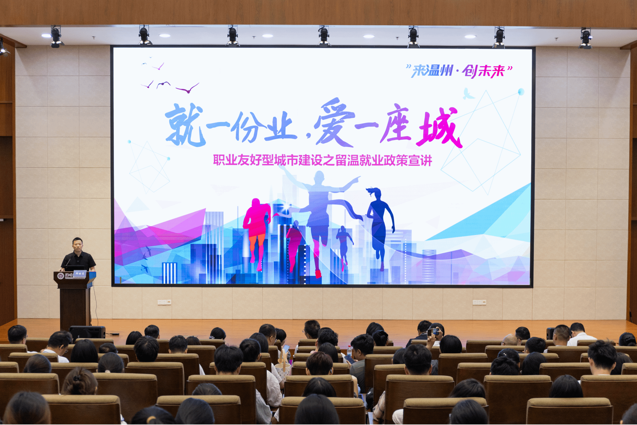 温州市人力资源和社会保障局就业创业管理服务中心副主任郑皓亮以“就一份业,爱一座城”为主题,围绕生活补贴、就业补贴、创业扶持、人才驿站等方面解读职业友好型城市建设之留温就业政策,鼓励学子扎根温州、共建温州。