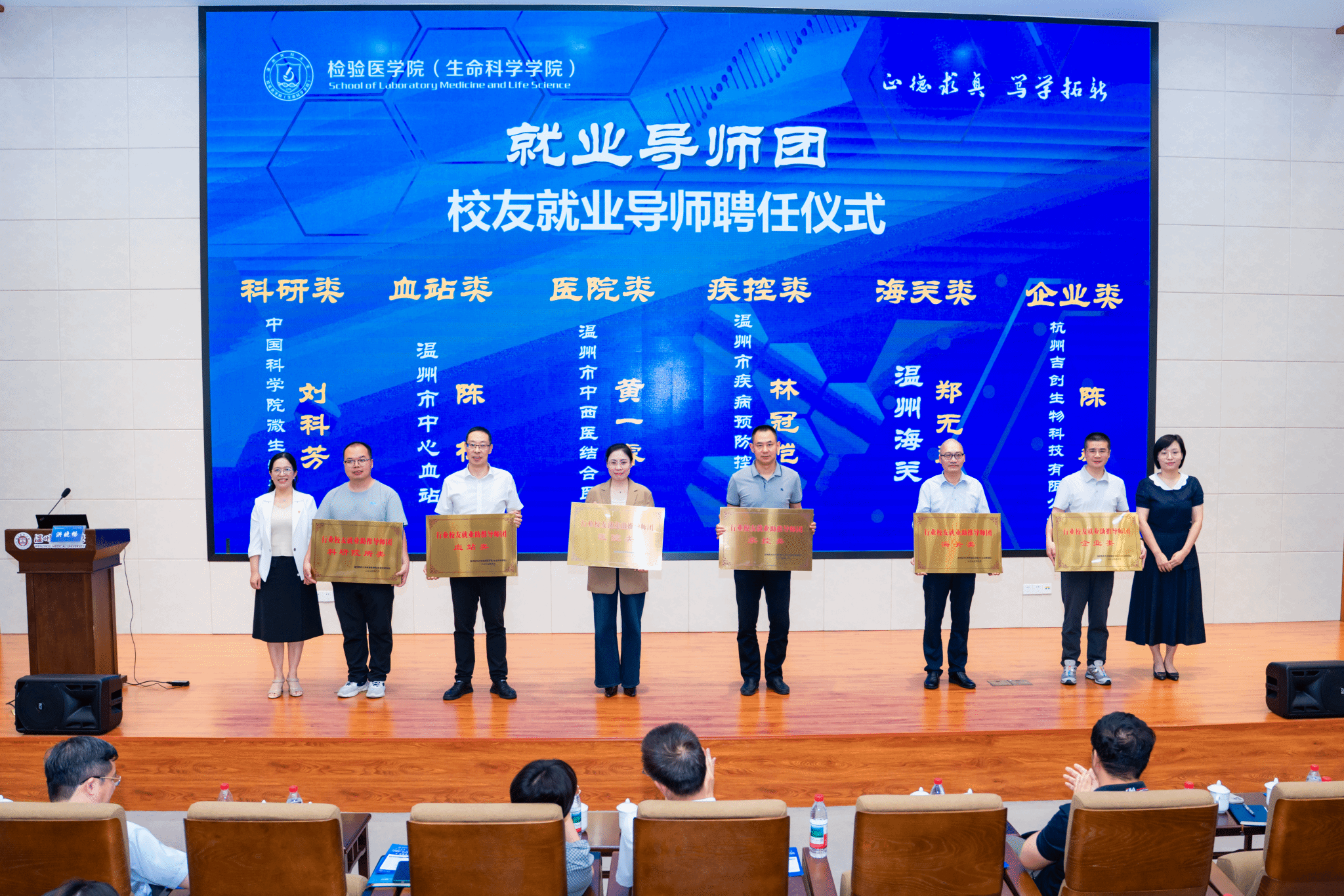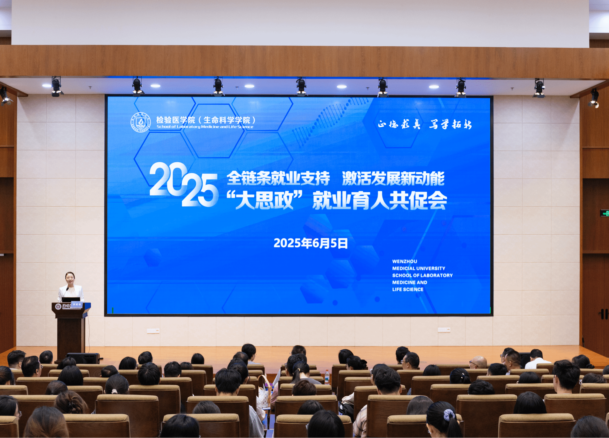 “全链条就业支持,激活发展新动能”大思政就业育人共促会在生物医药科研楼报告厅举行。校党委副书记汪军洪,校党委学工部、学生处,研工部、研究生院,社会科学处等部门负责人,检生学院班子成员,温州市人社局相关负责同志,医院、企业嘉宾、校友代表、学院师生代表共200余人参加会议,共同赋能助推大学生就业。