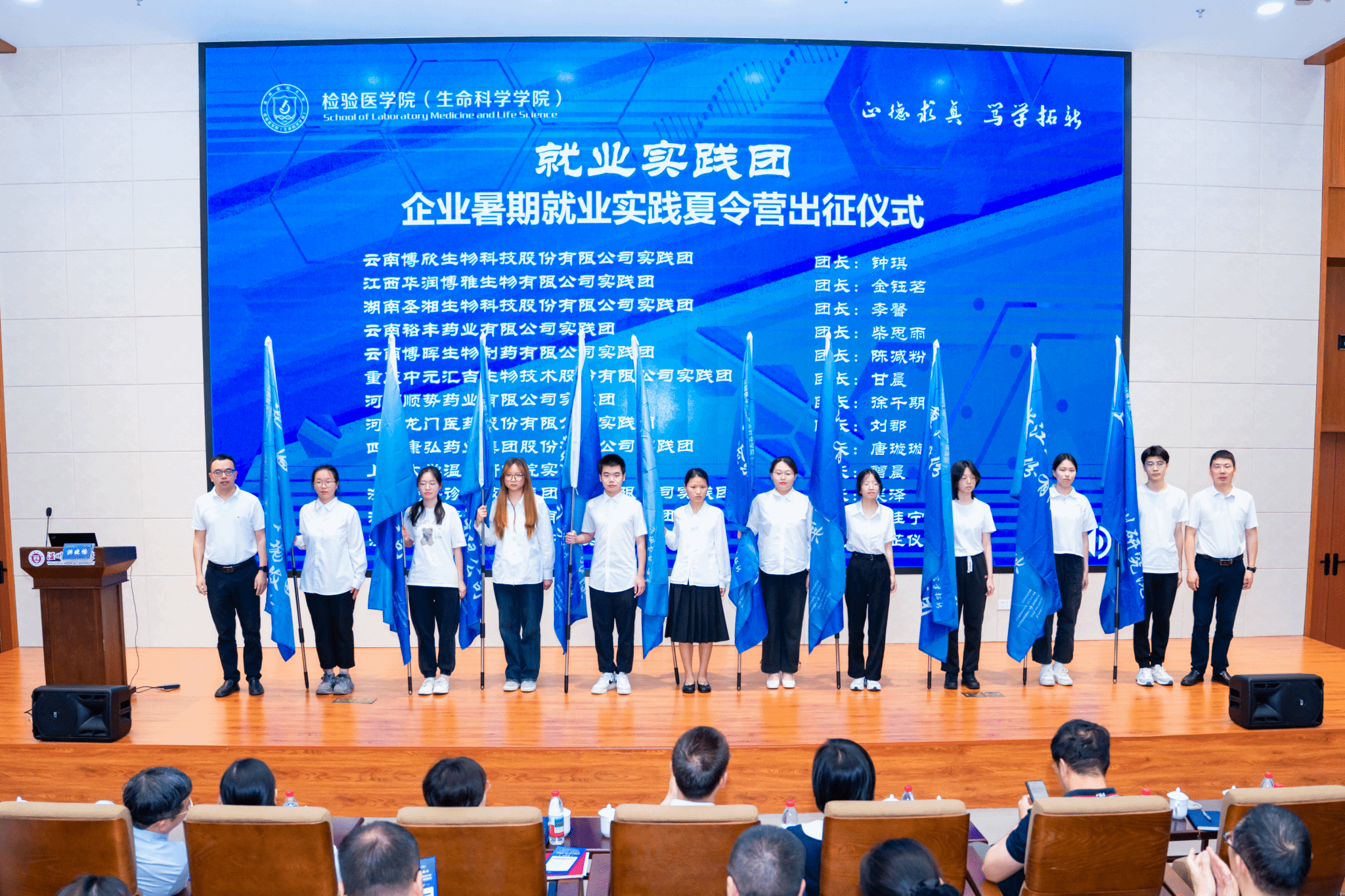 会议举行了针对科研院所、海关、疾控、血站、医院等不同类别的“行业校友就业助推导师团”成立仪式,提供行业对口就业支持;从低年级培养学生面向广阔企业市场的就业观,奔赴云南、四川、河南、重庆等企业就业实践的返家乡“企业暑期就业实践夏令营”出征仪式;“朋辈考研导师”聘任仪式;“就业面试诊官”聘任仪式;智慧检生新型就业智库专家顾问聘任仪式,深化全链条就业支持体系建设,从校友助力、实践赋能、政策解读、AI融合等多维度发力,精心构筑起贯通“认知引导-能力提升-实战锻炼-精准帮扶”的全链式就业成长平台,真正实现了“从校园到职场”的无缝衔接与全程护航,实现了将思政教育贯通始终,引导学生服务国家需求与个人价值统一。
