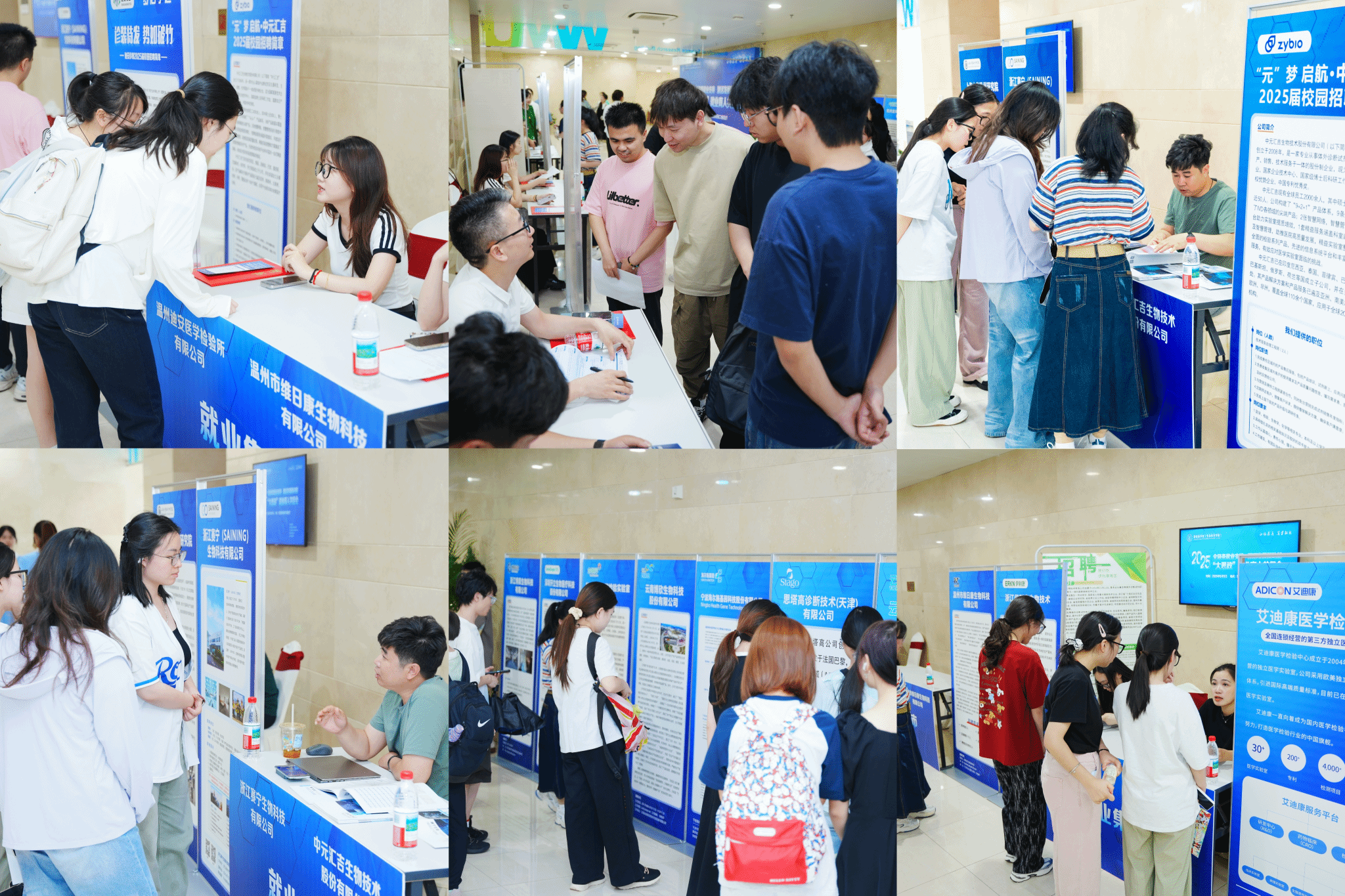 会前,学院向4000余位校友发出大思政就业育人共促会邀请函,校友们积极响应,踊跃加入“就业助力钉钉群”,并在群内持续推送招聘信息、分享行业动态与职场经验。此外,学院在生物科研楼二楼报告厅前同步举办“就业双选集市”,艾迪康、迪安诊断、中元汇吉等多家用人单位现场提供就业岗位,把工作机会送到了毕业生“家门口”。