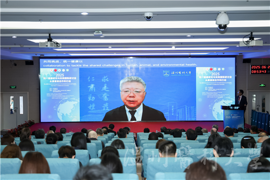 校长李校堃院士做视频致辞宣告,并强调“同一健康”理念在应对全球性健康威胁中的重要性,分享了其在厂长资源