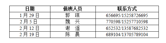 2024年寒假值班安排