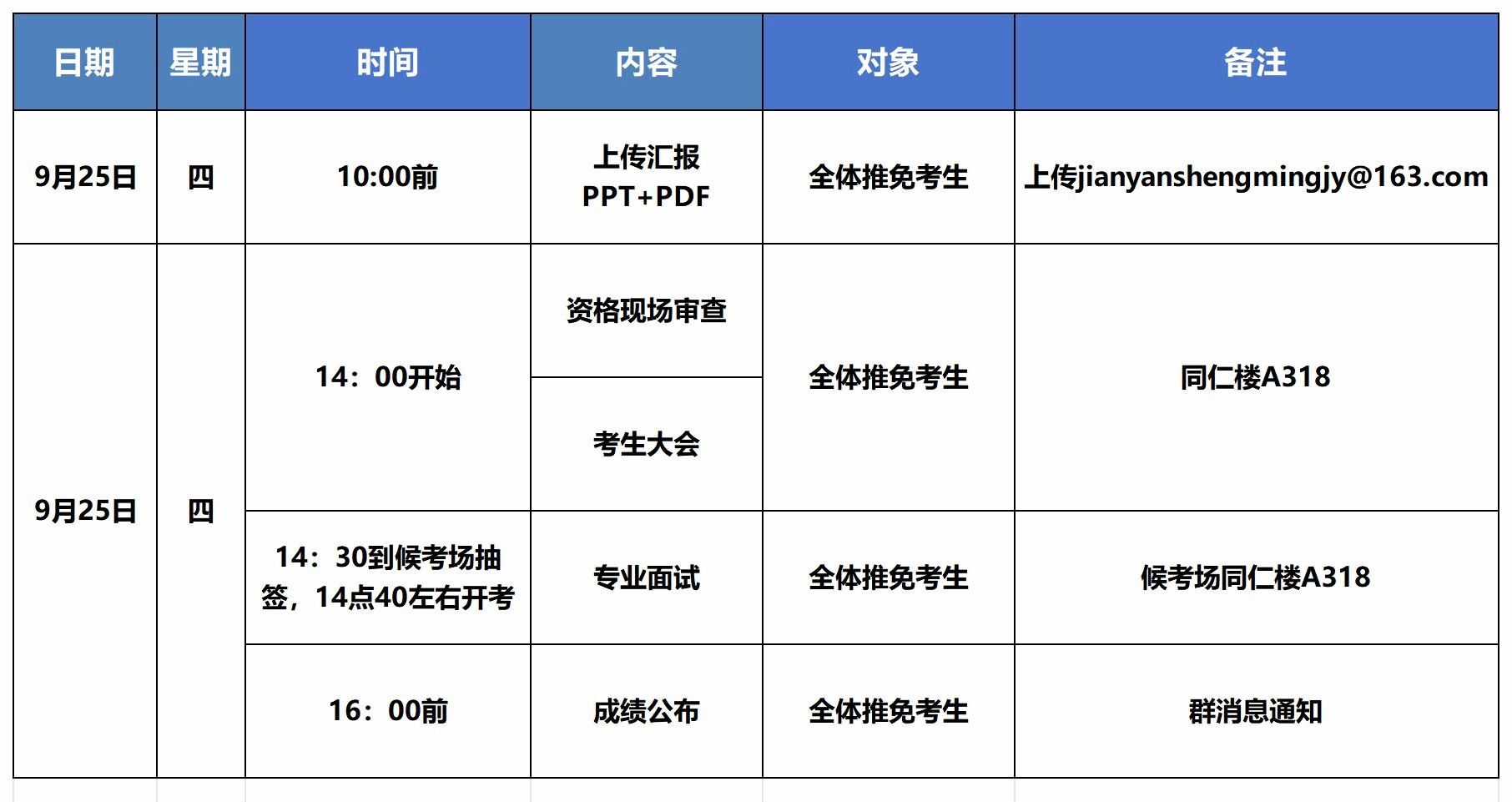 (一)复试报道时间:9月25日(星期四)下午14:00