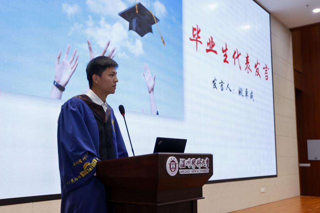 随后,优秀毕业生代表姚卓成同学发表毕业感言,与大家分享了他硕士期间在学习、科研、生活的美好经历,同时代表全体毕业生向学院送上最衷心的感谢和真挚的祝福。