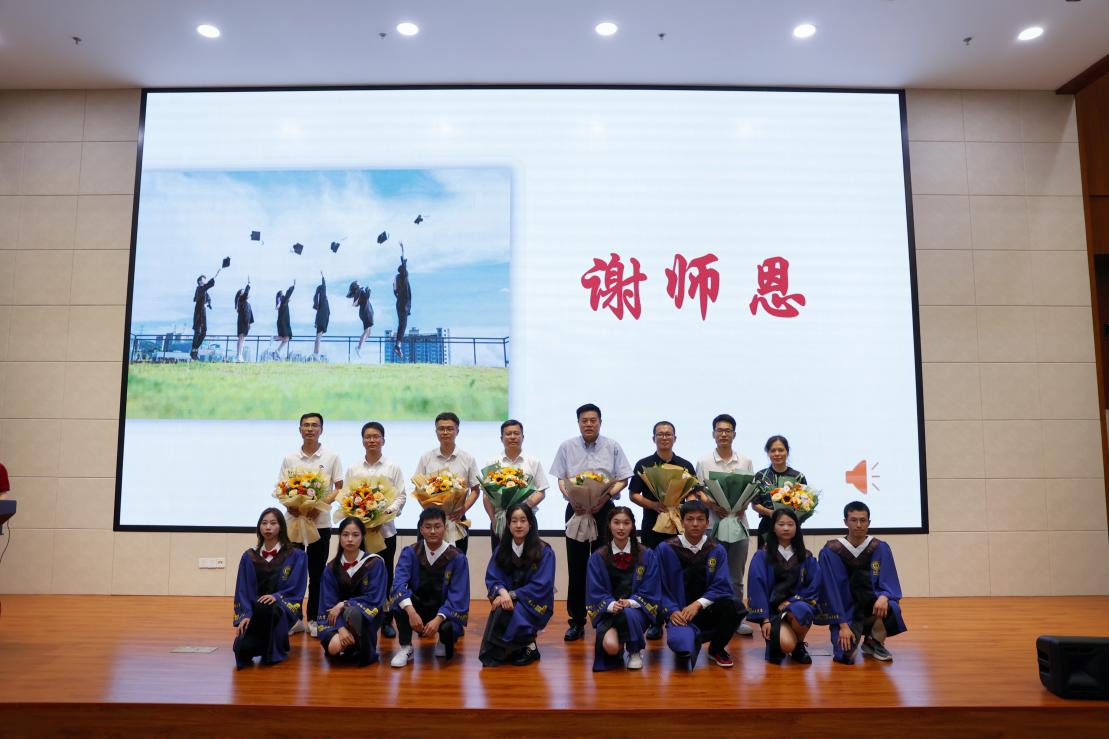 天涯海角有尽处,只有师恩无穷期。毕业分别之际,毕业生与导师代表互赠礼物表达情意。导师们上台为优秀毕业生们表彰。随后,优秀毕业生代表为导师们献上鲜花并鞠躬致谢。