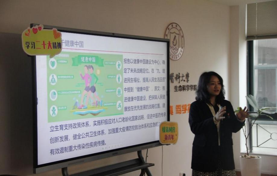 团委书记吴东方老师以“学习二十大 永远跟党走 奋进新征程”为主题为大家讲授了一堂党课,其中重点解读了二十大报告中卫生健康部分,并结合工作实际谈学习讲感悟,强调要坚定理想信念,提高党性修养,以高度的政治担当和责任意识,团结奋斗、真抓实干,做到学以致用,增强本领,将报告精神转化为推动工作落实以及青年奋进的强大动力,为祖国的医药卫生事业发展贡献青春力量。