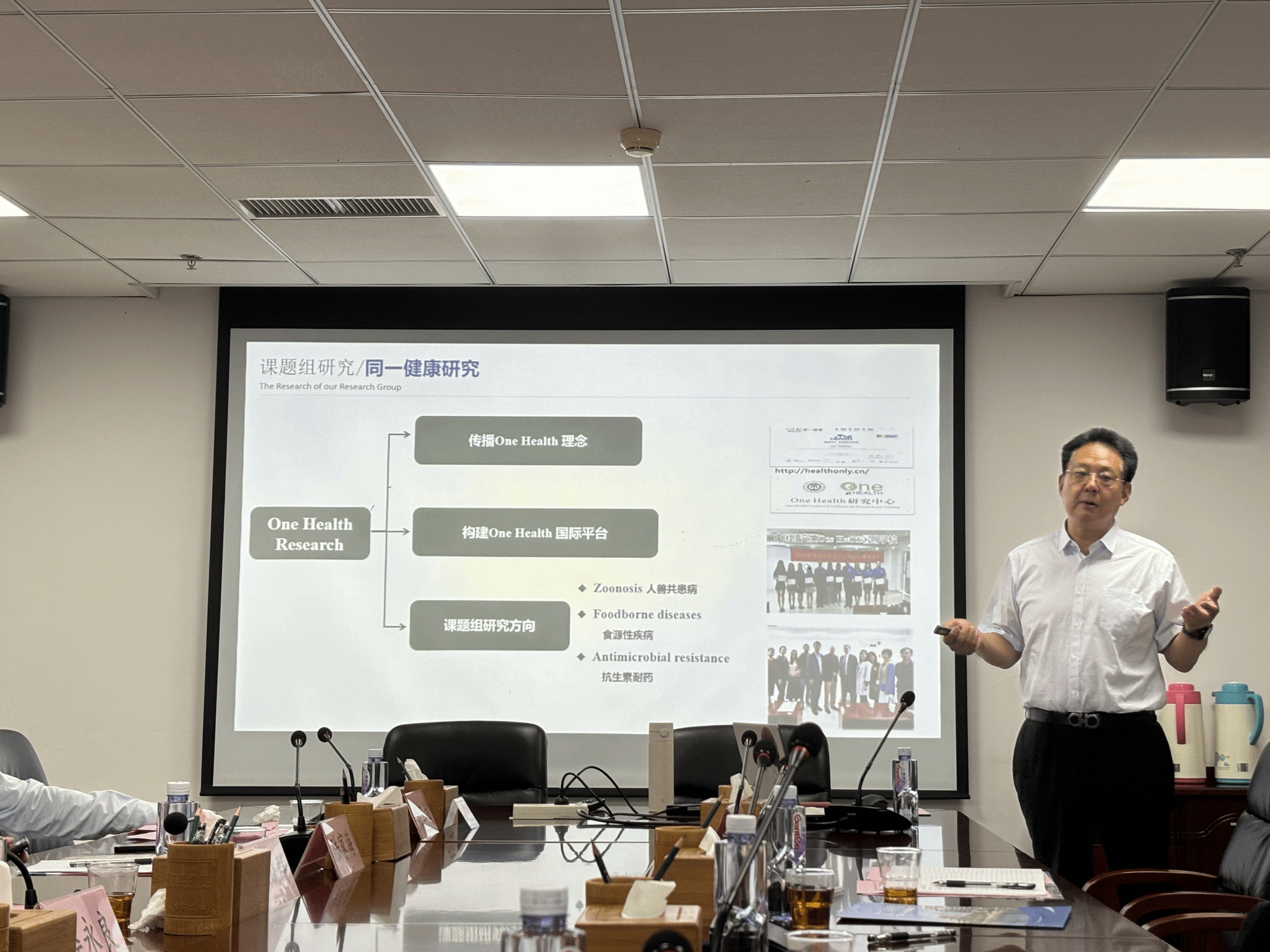 来访表示热烈欢迎。厦门医学院基础医学部主任王琛、基础医学部副主任伊雪、医检专业负责人袁丽杰分别从学科建设发展、研究生教育培养、学生特色培养、学生科研创新等方面进行了交流分享,院长郑晓群介绍了学院情况,分享了学科建设及研究生培养等方面的经验,双方进一步表达了深化合作的愿景和方向。随后,陆家海教授作了主题为“同一健康”终结未来大流行的报告,对人类健康面临的重大健康问题提出了基于“同一健康”理念的解决策略,并对大家提出的相关科研问题作了细致解答。交流会后,大家参观了厦门医学院机能与临床转化福建省高校重点实验室。
