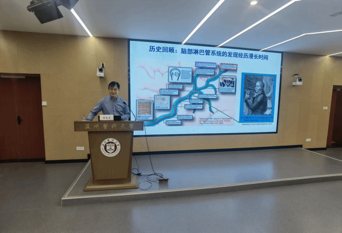 做题为《脑膜淋巴管介导的免疫调控》的求真讲座,学院院长郑晓群教授主持。