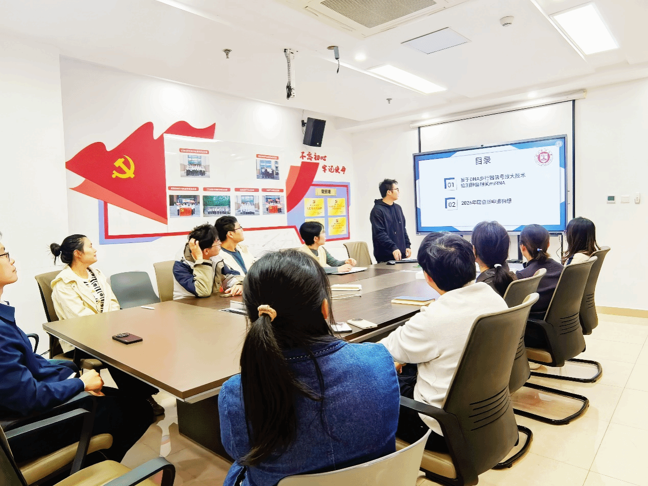 2025年11月11日下午,求真讲坛(院内专场)系列讲座之“基于DNA步行器信号放大技术检测肿瘤相关miRNA及2026年国自然申报构想”在生物医药科研大楼南702会议室举行。本次论坛由学院副院长黄海山主持,潘文豪博士主讲,学院PI及青年科研人员参加了本次学术交流活动。