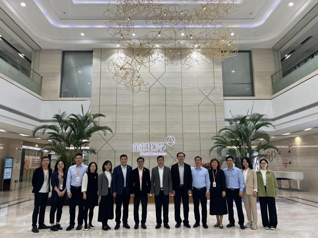 4月11日,在广州医科大学金域检验学院生物岛院区,一行人参观了金域医学集团,并与学院院长梁耀铭、党总支书记曾王兴、副院长程雅婷等进行会面,调研学习金域检验学院校企共同办学体制、育人体系建设、课程设置、校企师资培养、人才培养方案实施等情况,并就专业特色班开办、实践教学等内容进行了进一步的探讨和交流。
