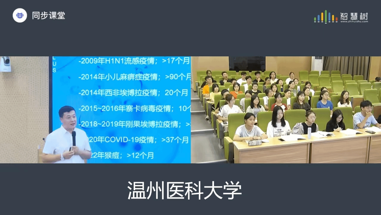 课堂上,关万春教授从传染病发展史引入,通过讲解传染病案例并结合自身经历,深入浅出地介绍了传染病发生发展形势、传染病防控成效以及气候变化对传染病的影响等内容,向两校同学呈现了一堂鲜活生动的优质专业课。最后,关万春教授以“看山是山,看水是水;看山不是山,看水不是水;看山还是山,看水还是水”总结课堂,鼓励卫检专业的学生从审核辩思维出发,用专业人的目光关注气候变化对于人类健康和传染病传播的影响,发挥卫检人的专业影响力!