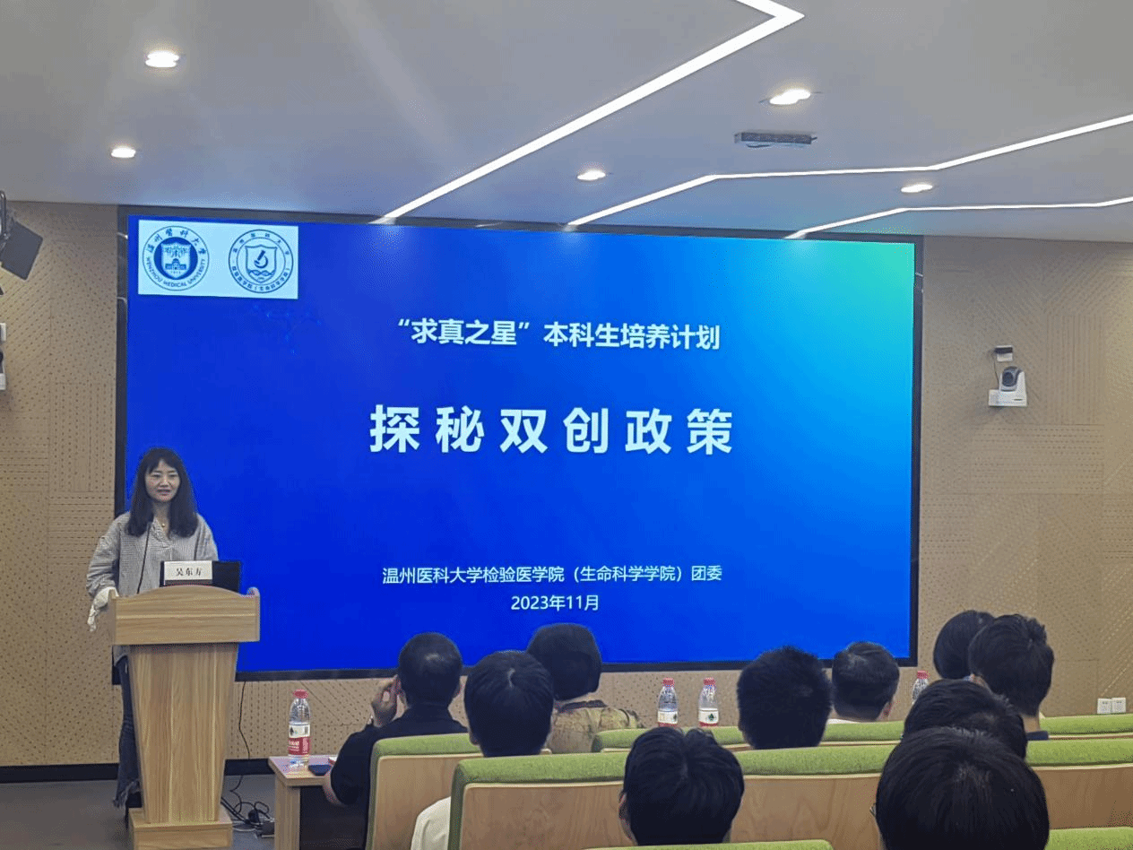 团委书记吴东方老师从政策支持、项目介绍、激励机制三个方面介绍了学院对学生创新创业的重视和支持,鼓励同学们积极参与到创新创业中去,在各类项目上提升自我、展现自我。