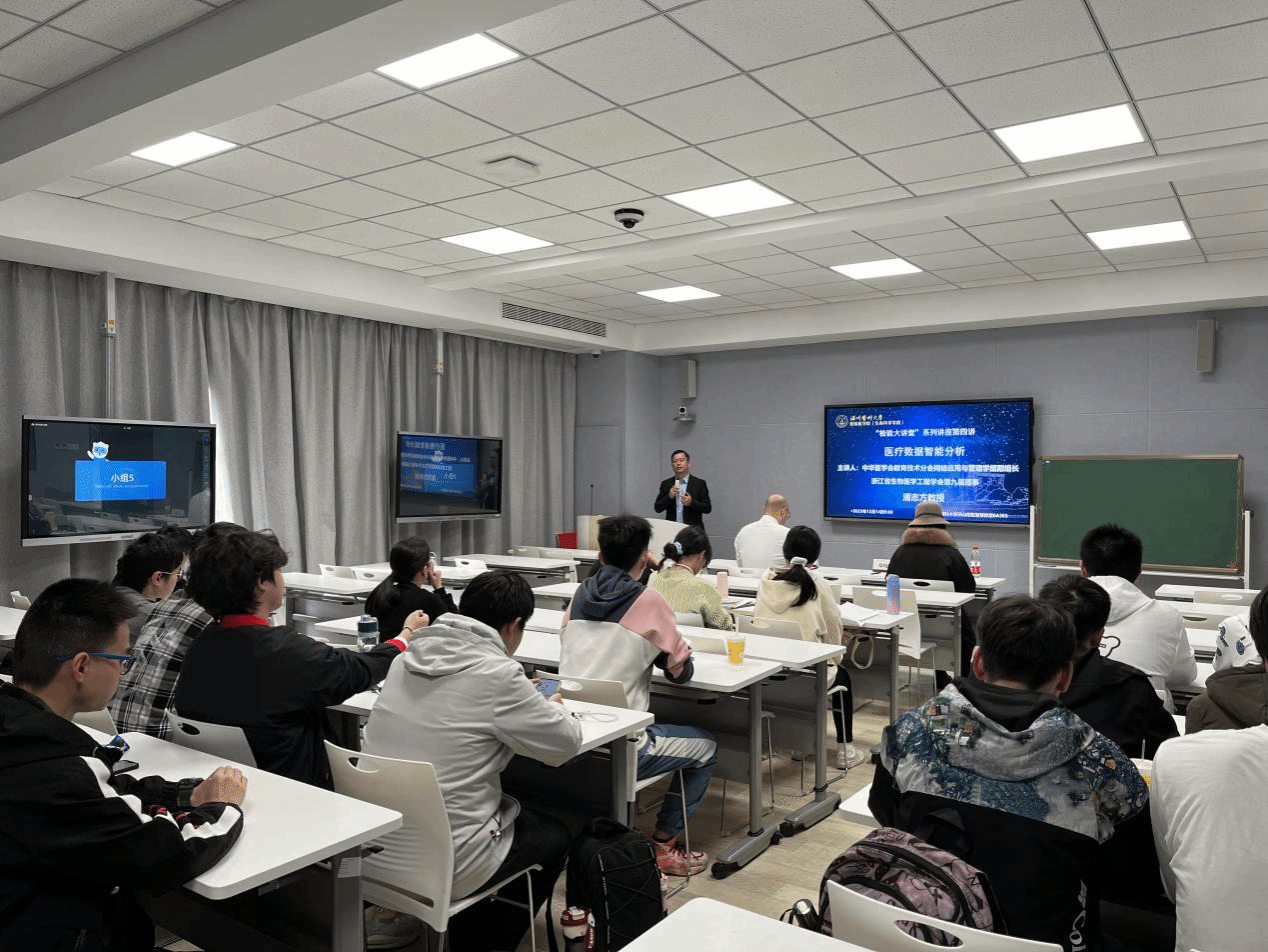 12月14日上午,本学期第四场“检验大讲堂”系列讲座在茶山校区同济楼智慧教室6A303举行。学校信息技术中心副主任潘志方教授,他为中华医学会教育技术分会网络应用与管理学组副组长、浙江省生物医学工程学会第九届理事,就人工智能、医学影像智能分析、不足与展望等内容与2022 级临床医学(检验医师培养试验班)的同学们进行了深入交流。本次活动由学院执行院长郑晓群教授主持。