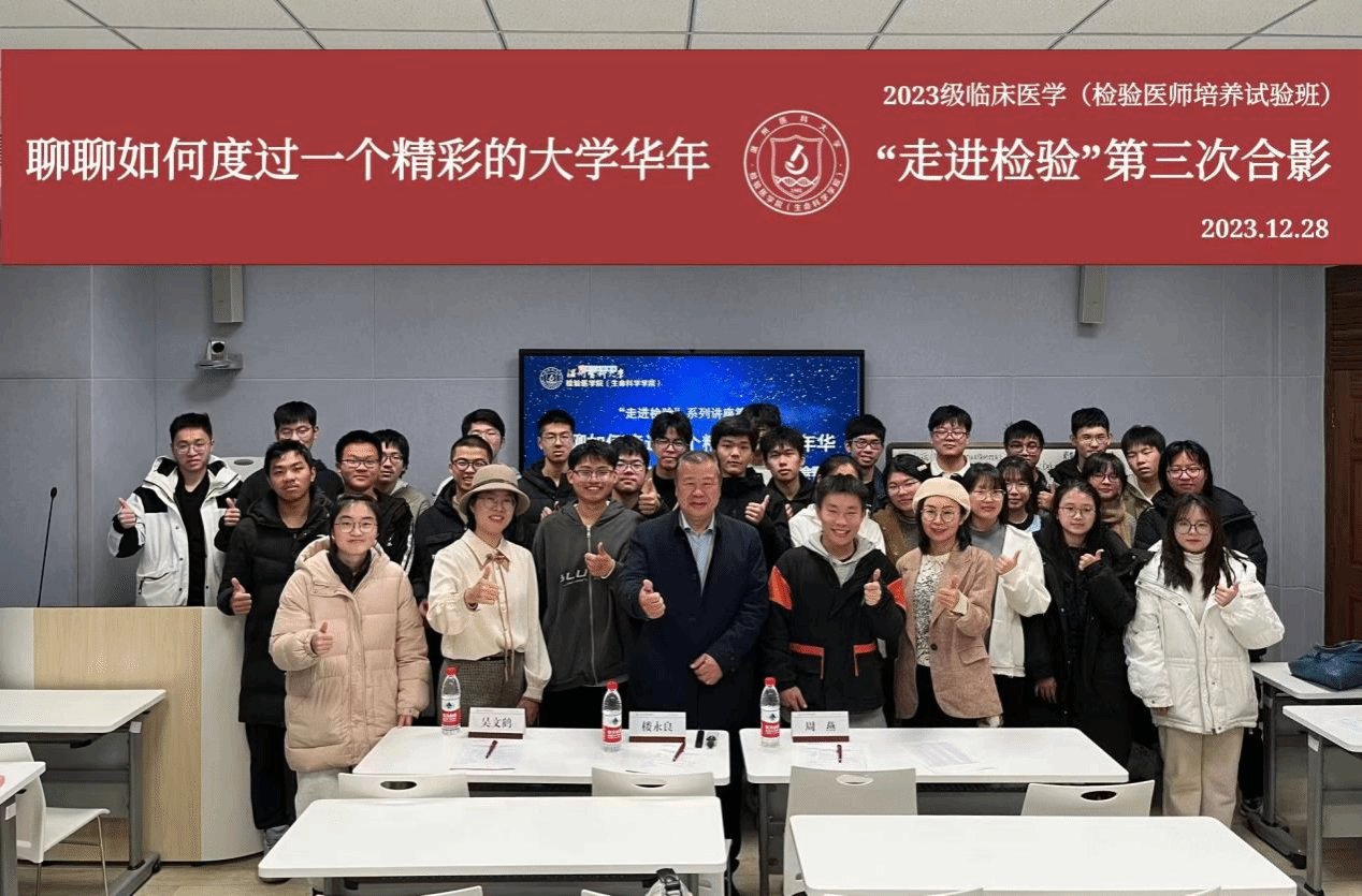 检验医学办学历程,并指出学校临床医学(检验医师培养试验班)是教育部批准成立的首批“检验医师培养试验班”,仅北京大学等五所高水平高校开办。他勉励同学们成为精临床通检验的高层次复合型检验医师,争取成为本领域的领袖人物。在交流过程中,楼教授从临床医学(检验医师培养试验班)专业人才培养的角度进一步交流了“如何度过一个精彩的大学年华”,鼓励同学们去体悟作为医学生的责任担当,希望同学们能成为社会责任感强、专业素养扎实、实践能力突出、创新意识活跃的全能型人才。