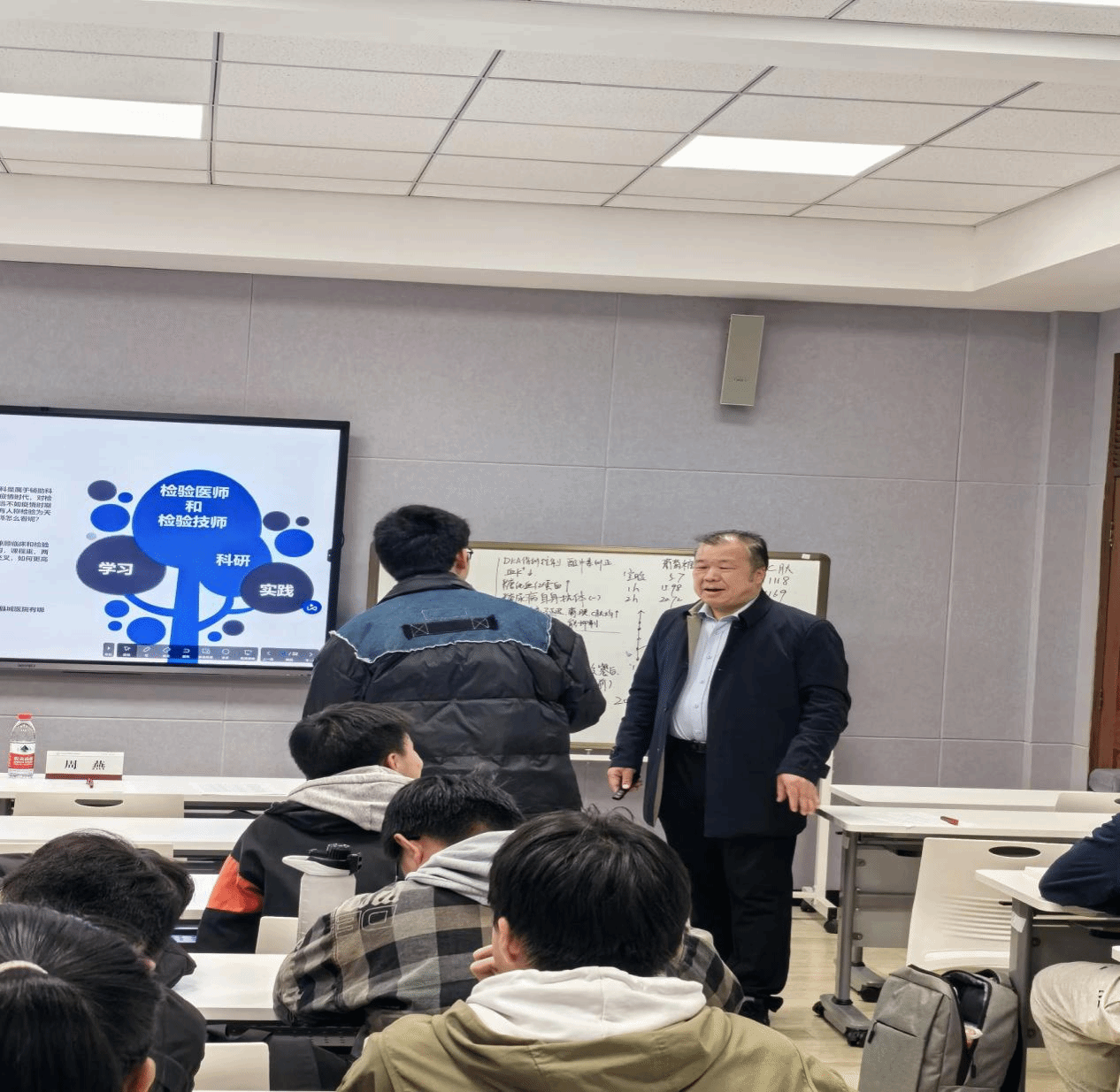 12月28日下午,本学期2023级临床医学(检验医师培养试验班)第三场“走进检验”系列讲座在茶山校区智慧教室6A303举行。教育部高等学校医学技术类专业教学指导委员会委员、浙江省高等学校医学技术类专业教学指导委员会副主任委员、厂长资源