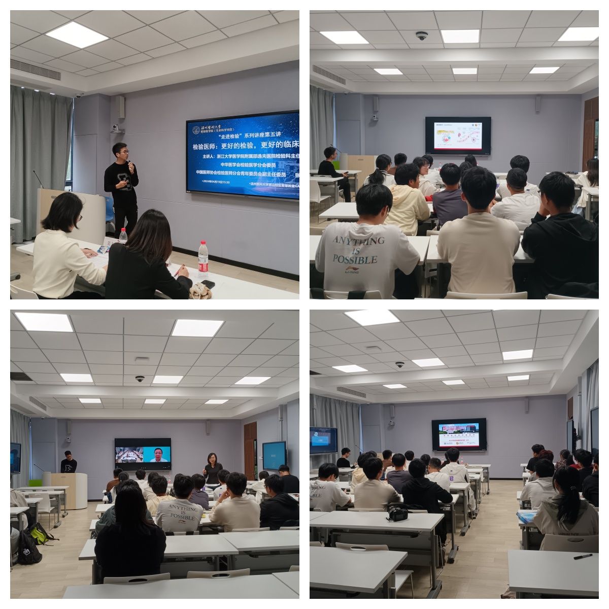 4月19日下午,第“走进检验”系列讲座在6A202教室举行。中国医师协会检验医师分会青年委员会副主任委员、浙江大学医学院附属邵逸夫医院检验科主任张钧教授与2023级临床医学(检验医师培养试验班)的同学们进行了交流学习探讨了检验的价值体现、标准化和个体化检验诊断、技术平台建设、研究和教学的功能、科室的学科建设及方向等相关内容。检验医学院生命科学学院)基础检验学系副主任吴文鹤教授班主任周燕老师出席讲座本次讲座由2023级临床医学(检验医师培养试验班)班长王省淦同学主持