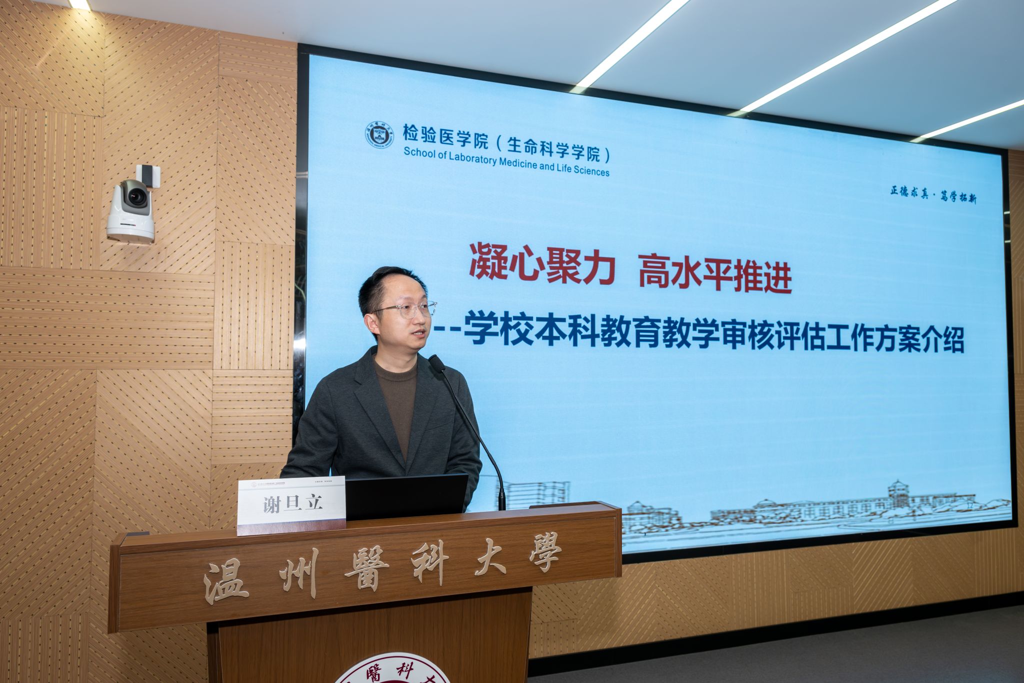 郑晓群院长作总结发言,他指出,全院上下作为本科教学评估迎评工作的参与者、推动者,要充分认识、高度重视审核评估迎评促建工作。他提出三点建议:第一,要提高站位,全面落实立德树人根本任务。坚持把立德树人作为教育教学的中心环节。牢牢把握育人为本、德育为先的要求,把思想政治工作贯穿教育教学全过程,不断健全全员育人、全过程育人、全方位育人的体制机制,不断提高学生思想水平、政治觉悟、道德品质、文化素养。二是进一步规范教学运行、优化教学资源、深化教学改革,“两有两能”的高素质本科人才培养质量实现新提升。三是进一步推进医教协同、科教融汇,依托医学技术、生物学、临床检验诊断学等学科优势,夯实国家级一流专业建设点建设任务,提升专业的综合实力和影响力。