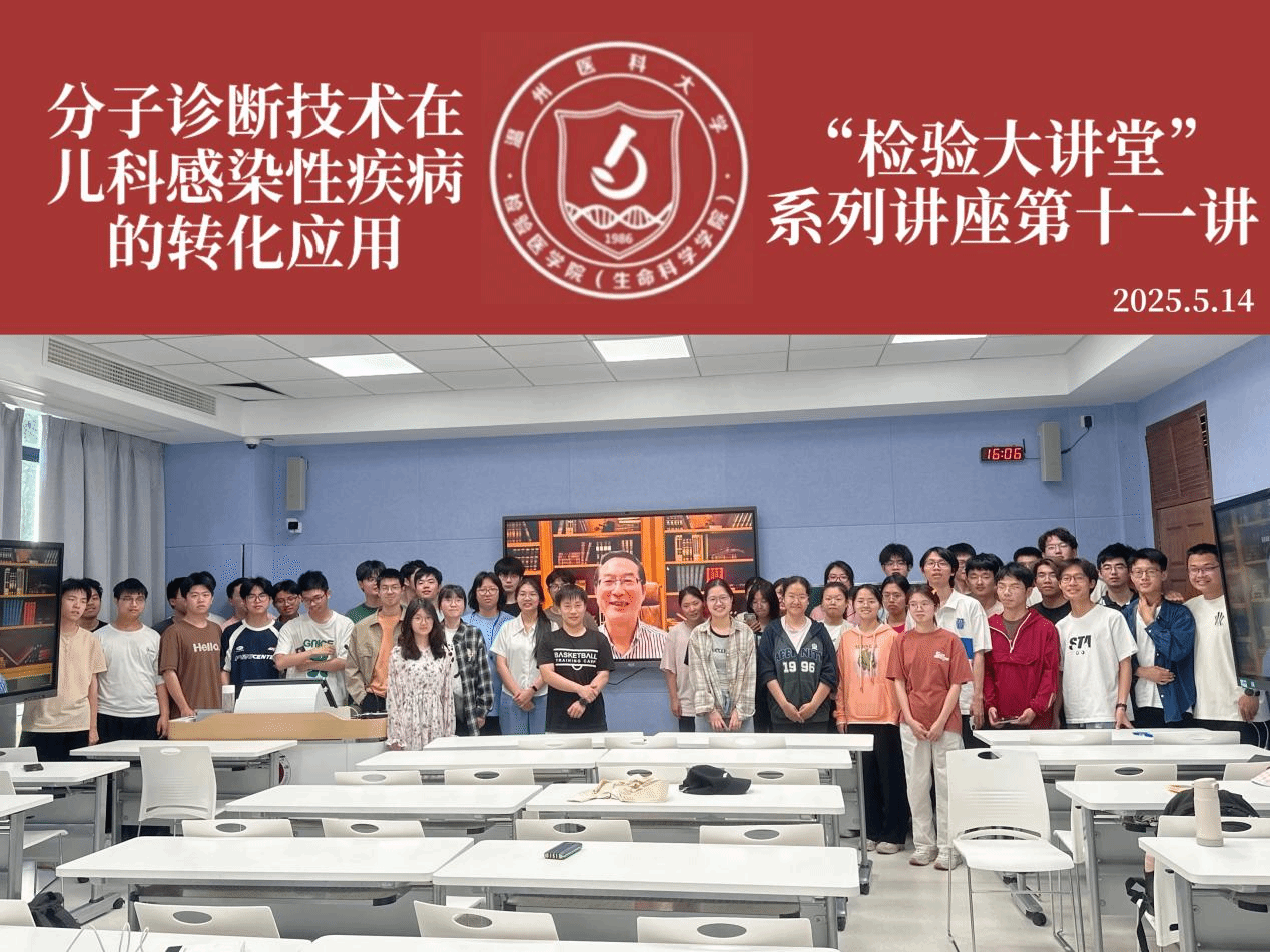 近日,本学期第二场“检验大讲堂”系列讲座在6B206举行。浙江大学医学院附属儿童医院实验检验中心名誉主任、浙江省基因诊断中心副主任尚世强教授围绕转化医学的重点、分子诊断技术在儿童感染性疾病中的转化应用和转化中遇到的问题等内容作精彩讲座。本次活动由王省淦同学主持,2023级、2024级临床医学(检验医师培养试验班)同学参加,2023级班主任周燕老师出席。