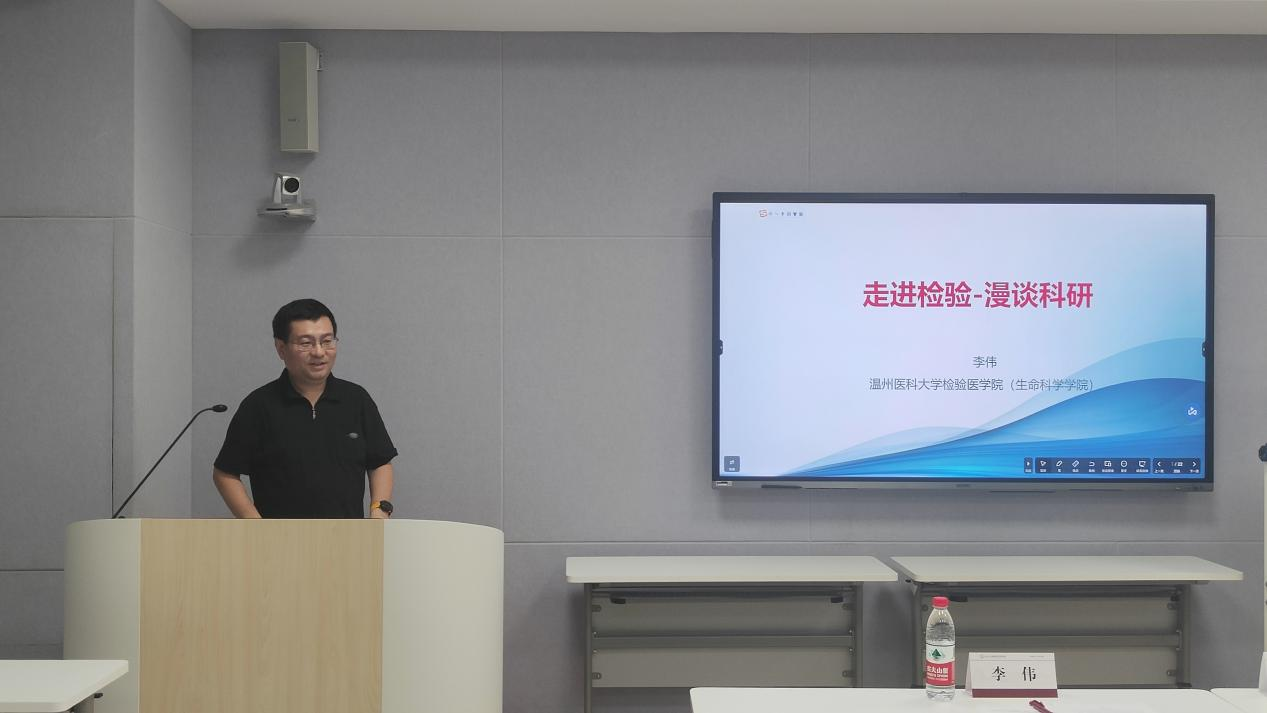 教授、博士生导师李伟教授与2022 级临床医学(检验医师培养试验班)的同学们深入交流,就怎样开展科研、怎样培养科研逻辑、科研对未来的影响等方面进行了讨论。本次活动由吴文鹤副教授主持。