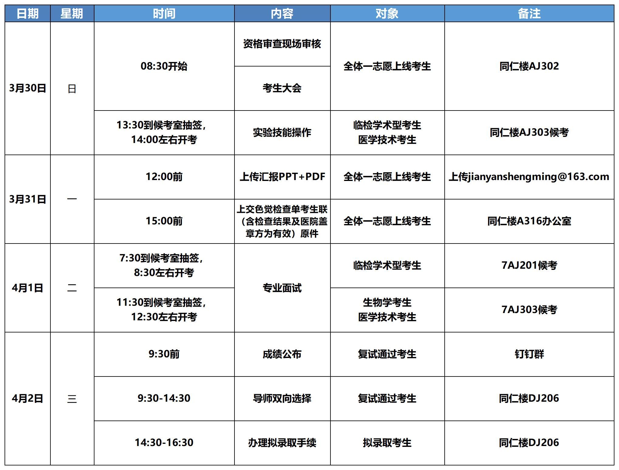 九、复试日程安排简表