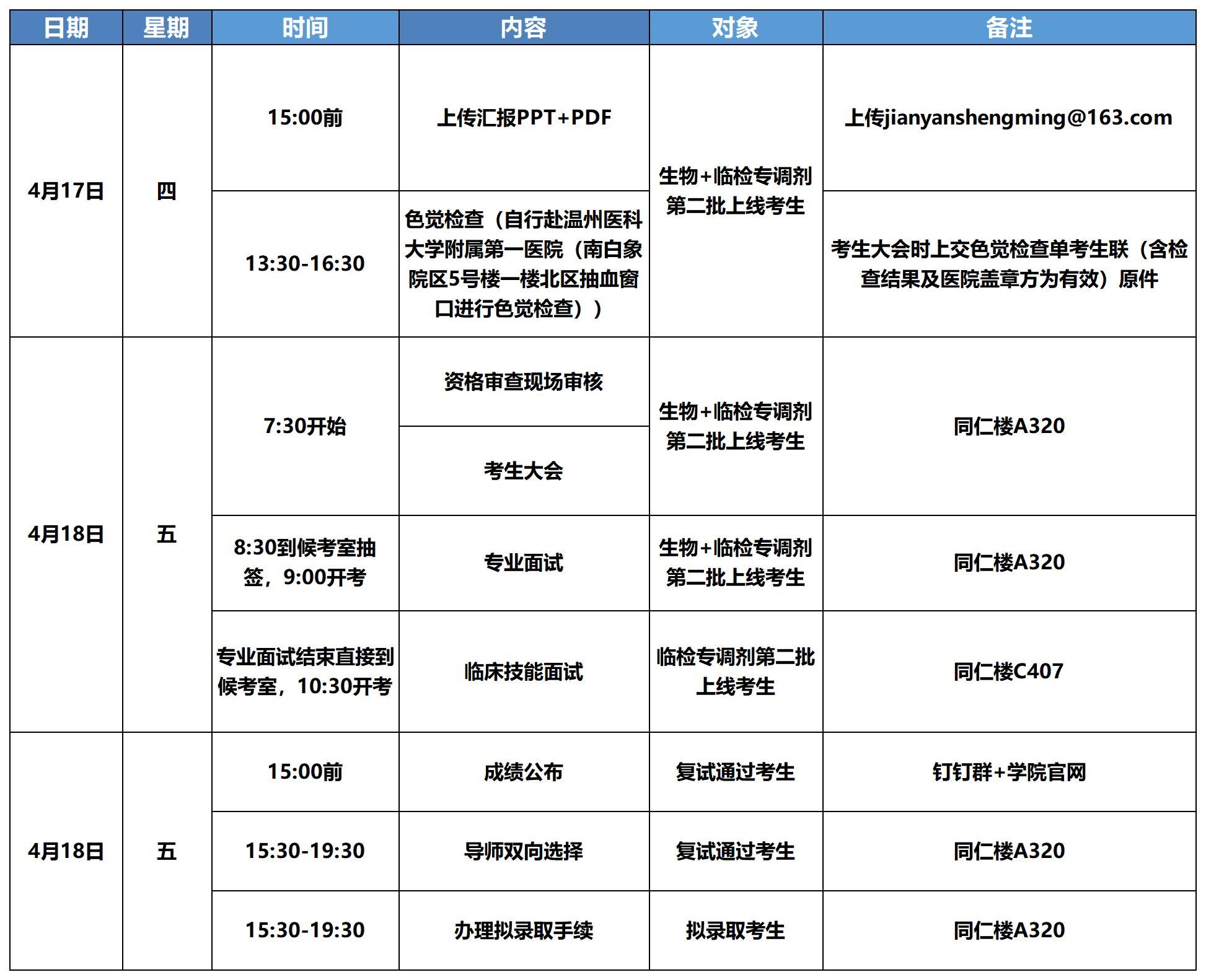 2025年硕士研究生复试录取工作方案》文件精神,现将硕士研究生(生物学学术型、临床检验诊断学专业型)第二批考生调剂复试安排情况通如下: