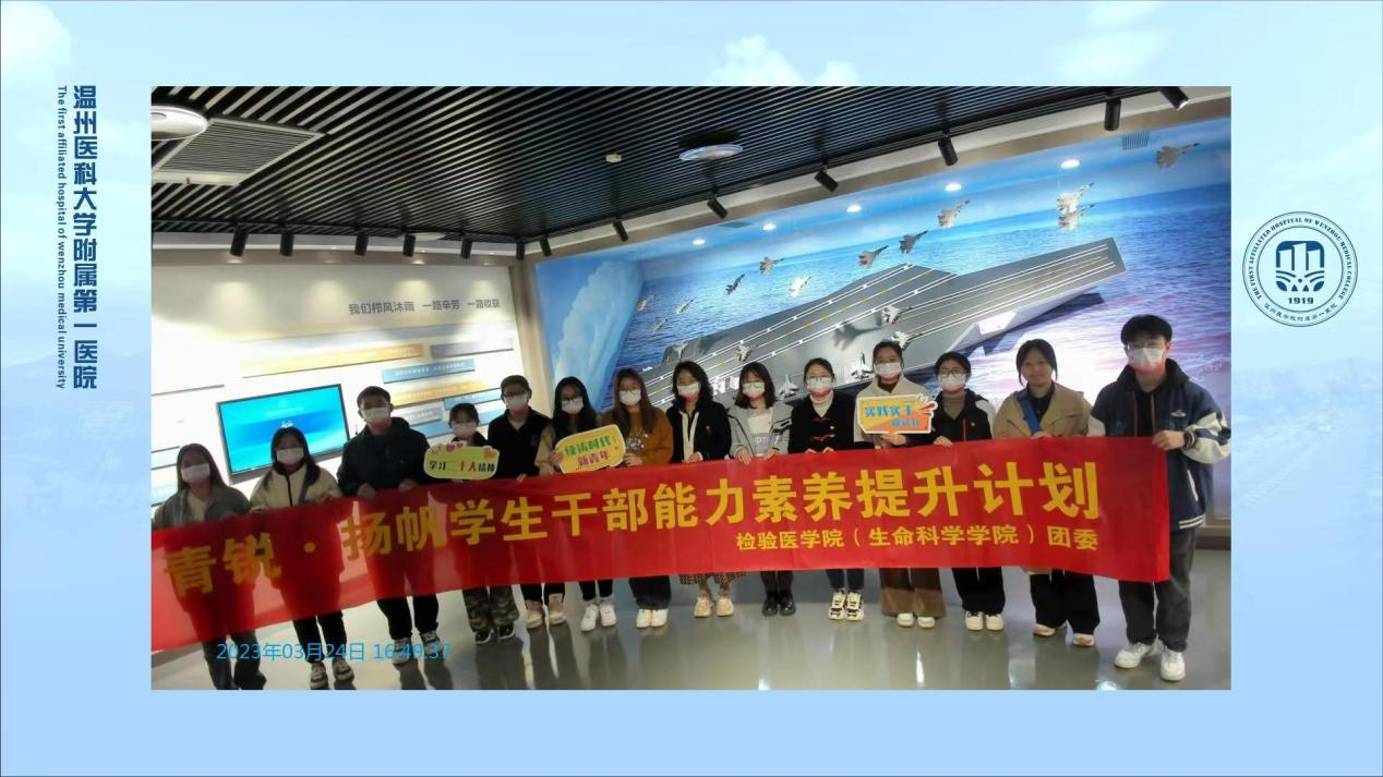 随后师生们前往温医大附一院南白象院区院史馆开展实践参观学习。院史馆共分为“历史溯源”“今日一医”“发展愿景”三大篇章,展馆中整齐陈列的一件件医学器具、历史物件,一册册病例记录本、医学著作,一张张老照片和“大事记”回顾都见证了百年一医的发展历程与峥嵘岁月,时至今日,这位历史的创造者依旧坚守初心使命,以医为笔,续写着医学的新篇章,也激励着一代又一代温医学子。同学们感受到温附一浩浩荡荡的奋斗史、创新史、奉献史。最后师生在“医疗航母”模型前合影留念。