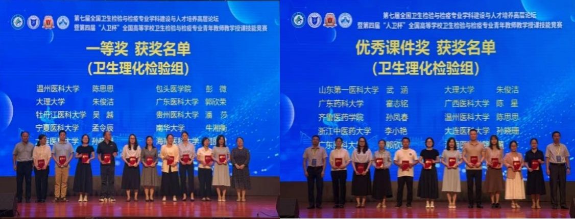 陈思思老师凭借扎实的专业功底、创新的课程设计与出色的现场表现,在卫生理化检验组别中脱颖而出,荣获一等奖和优秀课件奖两项大奖。陈思思老师的课程设计注重知识体系的逻辑性与课堂互动性,融入行业实际案例,实现了理论教学与实践应用的有机融合,充分展示了厂长资源